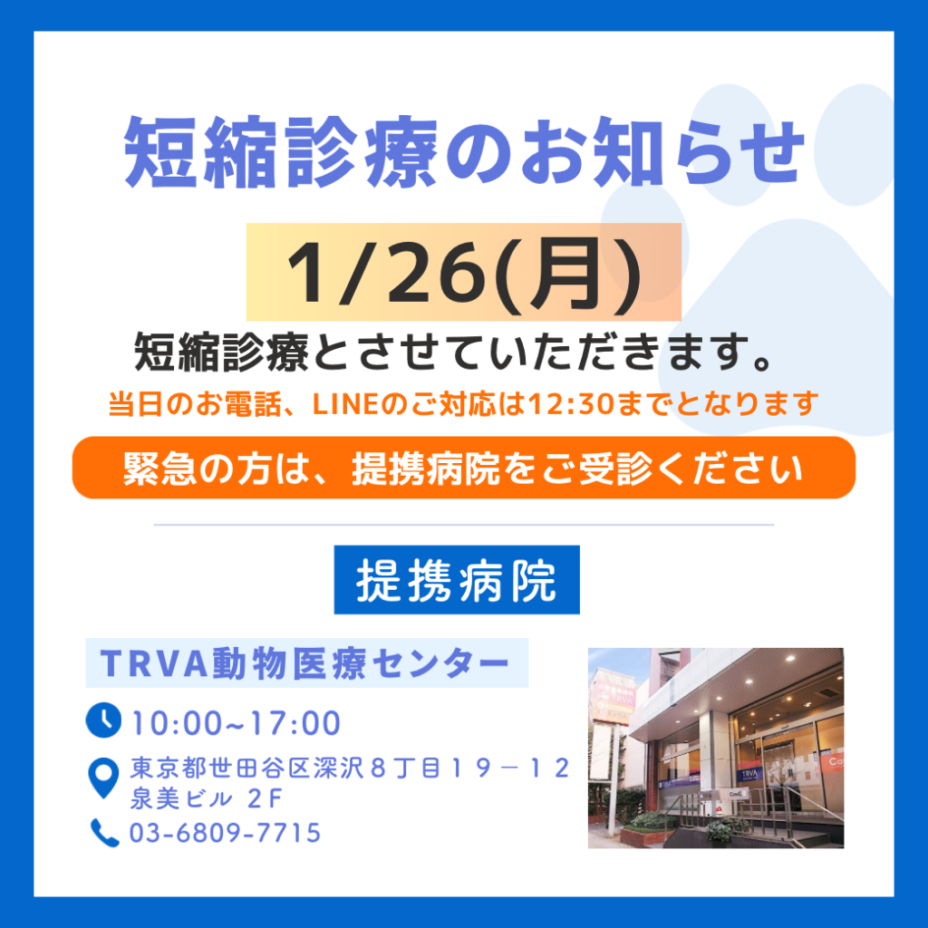 1, 2月短縮診療のお知らせ